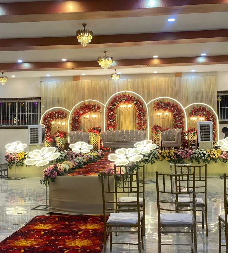 Celebrate your special day in our beautifully decorated banquet halls, designed for elegant and memorable wedding celebrations.